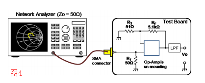 圖3顯示了運(yùn)算放大器的EMIRR測量電路,在比較器的情況下,添加一個NULL放大器測量偏移電壓,EMIRR測量需要SMA電纜和連接器來連接測試板和信號因?yàn)樗幚鞧Hz頻帶的高頻信號,并且測試板將RF信號發(fā)送到IC微帶線附近,+IN端子引腳應(yīng)為50Ω微帶線,以匹配RF布線和射頻發(fā)生器的阻抗,在PCB上使用50Ω端接,該終端電阻用于作為提供運(yùn)算放大器直流偏置的角色,并且,為了減少RF信號的影響,應(yīng)插入低通濾波器在輸出端子和電壓表之間,將RF信號幅度(VRF_PEAK)設(shè)置為100mVP和電壓增益(Gv)到101次. RF信號在測量中以寬頻率范圍掃描,這是通過微帶傳輸?shù)木€,但是,很難讓50Ω完全匹配從低頻到高頻的阻抗,因此石英振蕩器在定量測量中通過校準(zhǔn)來校正RF信號的輸入電平是必要的,正如所示圖4中,輸入RF信號的修正量是通過測量OP-Amp中的測試板阻抗ZL來確定的而比較器沒有網(wǎng)絡(luò)分析儀的安裝狀態(tài),通過測量的ZL確定信號發(fā)生器"VSG"的輸出電壓在每個頻率變?yōu)閂RF_PEAK=100mVP. 在安裝的測試板裝置中,RF信號在高頻率下對輸入端子的阻抗的影響而波動帶,該波動量被認(rèn)為包含在電磁波干擾信息庫特性中,因此RF信號波動沒有校準(zhǔn),如果將高于輸入端的電壓提供給輸出端,則IC可能會被破壞,安全工作區(qū)控制電路保護(hù)輸出傳輸晶體管在安全工作范圍內(nèi)運(yùn)行通過在輸入-輸出差分電壓增加貼片振蕩器時減小輸出電流來減小面積.