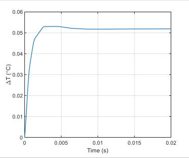在ComsolMultiphysics®中進(jìn)行的熱模擬驗證了DualMEMS模具結(jié)構(gòu)的固有優(yōu)勢。圖1顯示了在應(yīng)用入射到DualMEMS芯片一側(cè)的對流熱通量期間TempFlat諧振器和溫度傳感器之間的溫度偏移。這種高度不對稱的熱通量為基于DualMEMS的設(shè)備提供了最糟糕的情況,因為施加的熱源更接近石英晶體諧振器之一,因此在TempFlat諧振器和溫度傳感器諧振器之間強(qiáng)制出現(xiàn)熱梯度(盡管很?。?。在實際情況中,熱通量將入射到所有側(cè)面,使得兩個諧振器對稱地加熱。盡管如此,DualMEMS結(jié)構(gòu)仍然顯示出對熱干擾非常有彈性。在該示例中,如圖1所示,熱通量在TempFlat和溫度傳感器諧振器之間僅產(chǎn)生52mK的溫度偏差,并且在小于10ms之后溫度穩(wěn)定到其穩(wěn)態(tài)值。然而,當(dāng)受到入射在壓電石英晶體頂部的相同熱通量時,基于石英的振蕩器不那么堅固。圖2表明石英晶體和CMOS IC與溫度傳感器之間的溫度偏差要大得多,幾乎為3.5K,并且需要將近1s才能達(dá)到此值。顯然,結(jié)果表明Elite Platform DualMEMS架構(gòu)的熱性能比典型的石英TCXO好幾個數(shù)量級。