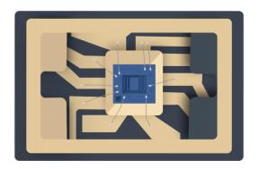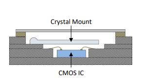 使用硅MEMS技術(shù)可以在同一芯片上制造定時陶瓷諧振器和溫度傳感器。使用傳統(tǒng)的石英晶體組裝工藝不可能同時振制造諧振器和溫度傳感器。石英TCXO的封裝,材料和性能限制需要晶體和溫度傳感器之間的大位移。石英傳感器需要對石英坯料進(jìn)行細(xì)致的加工,拋光和修整,以在整個溫度范圍內(nèi)實現(xiàn)所需的頻率穩(wěn)定性,而CMOS IC上的振蕩器電路,溫度傳感器和補(bǔ)償電路使用傳統(tǒng)的硅微加工技術(shù)制造。將這兩個基于兩種不同材料系統(tǒng)的組件集成在一起會帶來許多挑戰(zhàn)。石英換能器通常使用導(dǎo)電粘合劑安裝在陶瓷封裝中,使得其用環(huán)境氮氣懸浮在封裝腔中。晶體通過鎢通孔和金線鍵合電連接到CMOS IC,CMOS IC安裝在封裝的底部。圖3a顯示了一體化石英晶體振蕩器陶瓷封裝的橫截面示意圖3b頂蓋上安裝有石英晶體的去蓋部分和3c與石英晶體相同的部分移除后,顯示CMOS IC,溫度傳感器,振蕩器和補(bǔ)償電路安裝在封裝底座上的晶體下方。