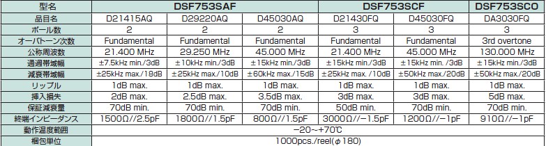KDS貼片濾波器,聲表面濾波器DSF753S,對講機濾波器,外形尺寸:7.0×5.0×1.3,小型?輕量(0.15g)SMD類型通過單體實現(xiàn)4POLE特性,保證衰減量特性卓越耐撞擊性,耐振動性卓越,被應(yīng)用于商務(wù)無線等無線通信機,小型表面貼片型標準晶體諧振器,適用于寬溫范圍的辦公自動化"1D21407AQ3",家電電器及汽車附件等領(lǐng)域??蓪?yīng)8MHz以上的頻率,在辦公自動化,家電相關(guān)電器領(lǐng)域可發(fā)揮優(yōu)良的電氣特性,滿足無鉛焊接的回流溫度曲線要求.