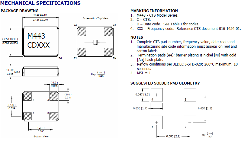 CTS晶振,貼片晶振,443晶振,石英晶體諧振器,低頻晶振可從12MHz起對(duì)應(yīng),小型,超薄型具備強(qiáng)防焊裂性,石英晶體在極端嚴(yán)酷的環(huán)境條件下也能發(fā)揮穩(wěn)定的起振特性,產(chǎn)品本身具有耐熱,耐振,耐撞擊等優(yōu)良的耐環(huán)境特性,滿足無(wú)鉛焊接以及高溫回流溫度曲線要求