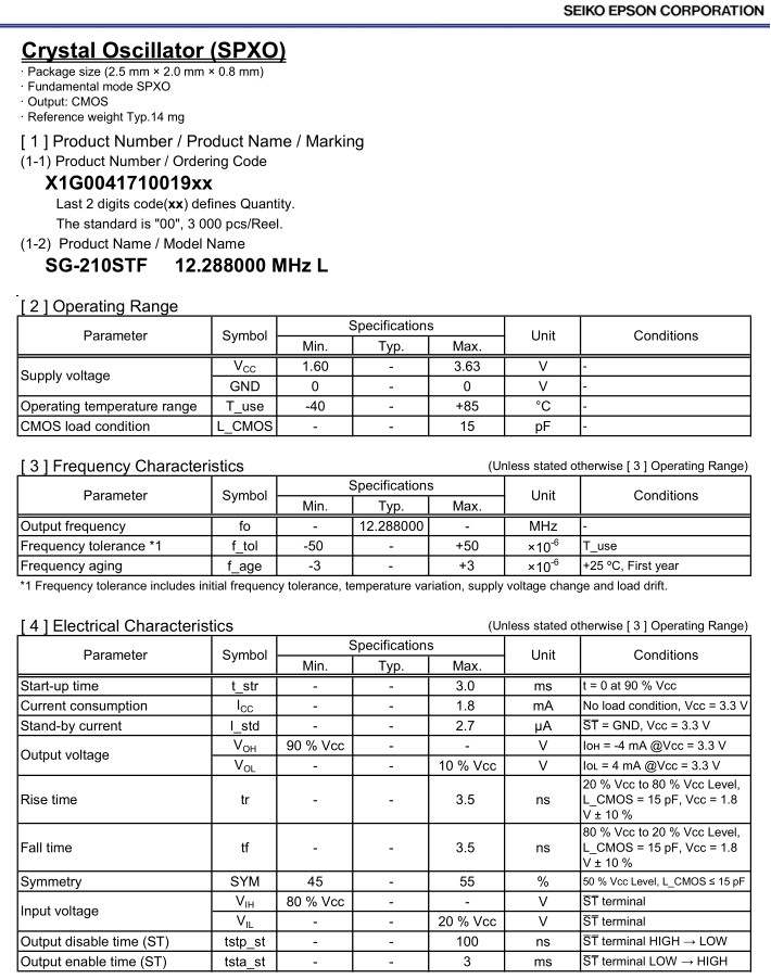 | X1G0041710102 | SG-210STF | 7.159090 MHz | 2.50 x 2.00 x 0.90 mm | CMOS | -40 to 85 °C | +/-50 ppm |