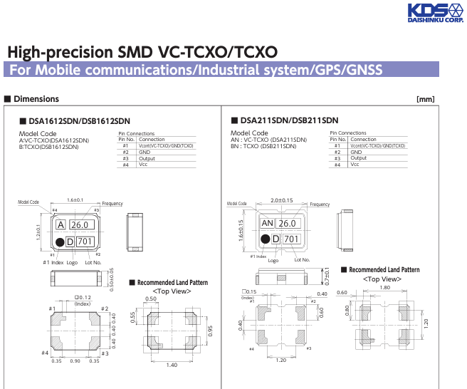 更多>>1XXD32000PBA KDS DSB211SDN 2016 32M TCXO晶振
