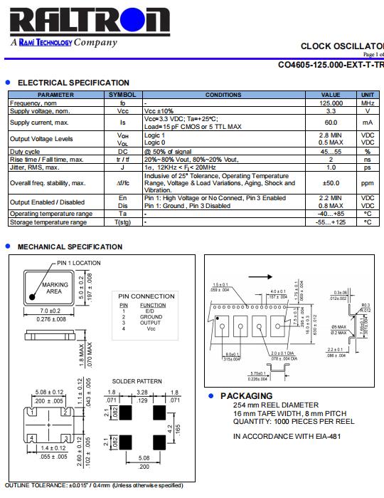 輸出CMOS的OSC晶振CO4605-125.000-EXT-TR常用于5G發(fā)射器,Raltron公司是行業(yè)領先的元器件制造商,在晶體行業(yè)之中致力于追求品質(zhì)和卓越。 這個哲學通過多年不間斷的增長,使得Raltron處于領先地位。Raltron研發(fā)設計出來的石英晶振產(chǎn)品具備優(yōu)異的質(zhì)量和成本性能,可以滿足不同應用程序的需求,并以高于用戶滿意度為最大的前提,而用于汽車應用的Raltron晶體單元的優(yōu)點:小而薄,回流兼容,AECQ-200質(zhì)量可靠,聲譽可靠,環(huán)境優(yōu)良等優(yōu)點,其中良心之作的有源晶振更是達到頂尖水平。