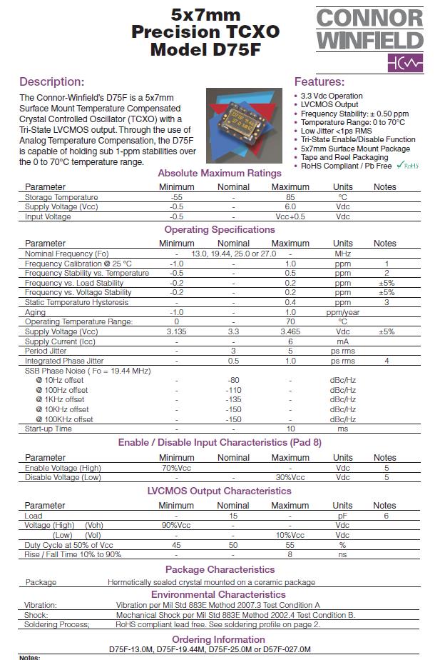 | D75F-025.0M | Connor-Winfield 進(jìn)口TCXO晶振 | D75F | 25MHz | 0°C ~ 70°C |