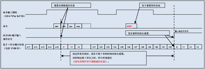 執(zhí)行ERST 時不清除進位信息,為此請在設定秒寄存器后不到 1 秒的時間內(nèi)重置低于1秒的計時器;