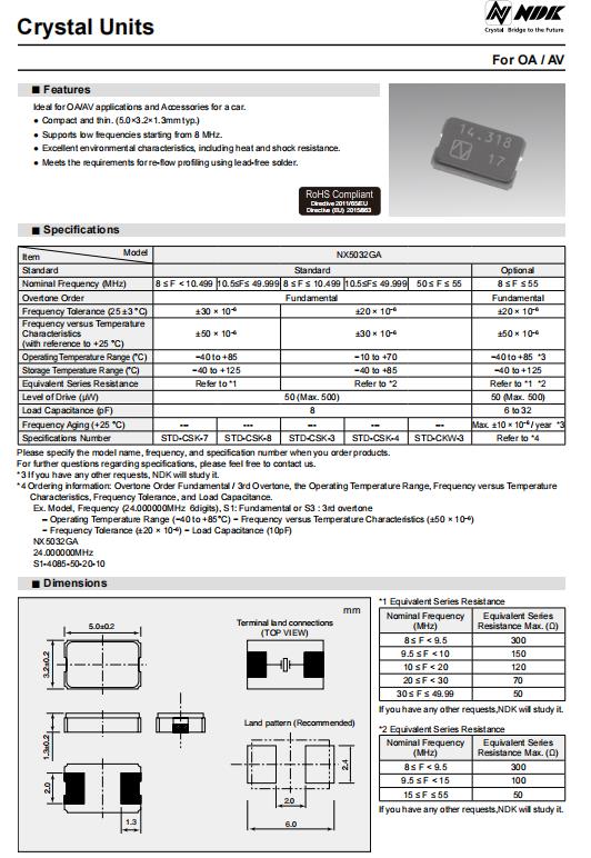 | NX5032GA-14.31818M-STD-CSK-4 | NDK無源晶振 | NX5032GA | MHz Crystal | 14.31818MHz | ±30ppm |