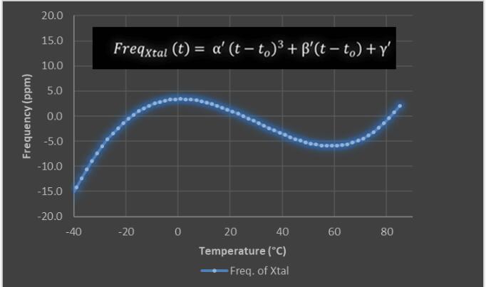 溫度和頻率偏差之間的關(guān)系可以進(jìn)口晶振使用3次多項式函數(shù)進(jìn)行近似計算.一個5th度函數(shù)也可用于更精確的曲線擬合.