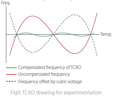 影響頻率穩(wěn)定性的最大因素是溫度特性.在溫度補(bǔ)償電路的幫助下,該振蕩器實(shí)現(xiàn)了溫度特性的高穩(wěn)定化.由于采用了指定的溫度補(bǔ)償電壓,振蕩器可以輸出更穩(wěn)定的頻率與環(huán)境溫度.主要用于移動通信設(shè)備頻率合成器的標(biāo)準(zhǔn)振蕩器.PDC(個人數(shù)字蜂窩)、GSM(全球移動通信系統(tǒng))、GPS(全球定位系統(tǒng))等要求的+ / -2.5ppm最大溫度穩(wěn)定性高頻率.這樣的要求不能滿足于切割晶體單元.此外,不同晶體單元在溫度特性上存在著細(xì)微的差別.因此,需要對溫度補(bǔ)償電路進(jìn)行補(bǔ)償以獲得較高的溫度穩(wěn)定性.