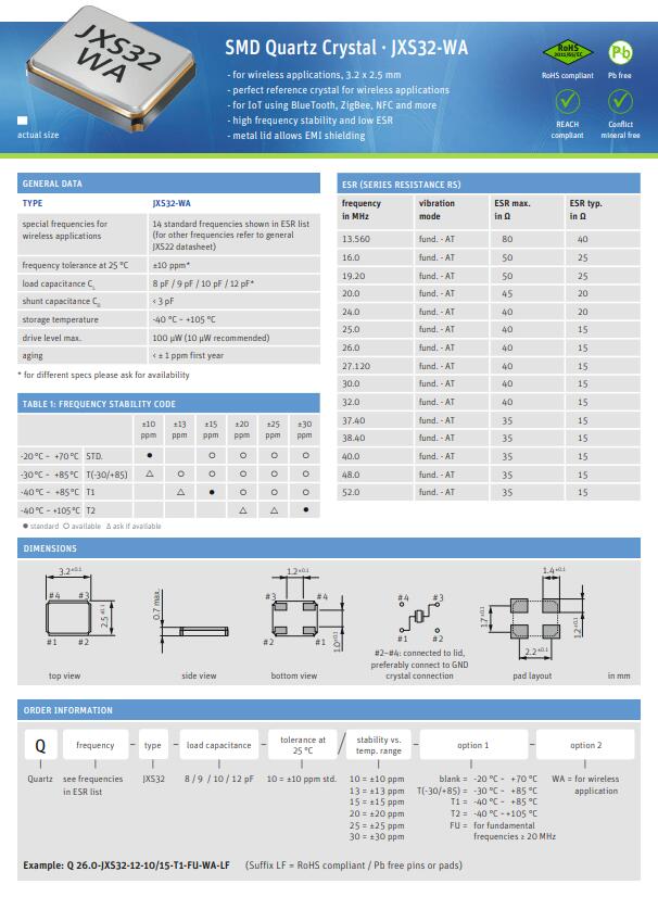 | Q 20.0-JXS32-9-10/10-FU-WA-LF | Jauch Quartz | 20MHz | ±10ppm | 9pF | -20°C ~ 70°C | 4 | 3225 |
