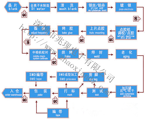 可能像我公司一樣已經(jīng)經(jīng)營晶振這行業(yè)七、八年了。但是有很多商家你知道銷售,你知道和客戶講價,但是你知道這一顆小小的晶振要經(jīng)過多少個制作流程呢?跟著我一起去看看吧。晶片-去離子水制造-清洗-銀絲-鍍銀-調(diào)校/點膠-上片點膠-烤膠-微調(diào)-中檢機校隊-烘烤-焊封-老化-加壓罐壓氣/風干-測試-打標-包裝-入倉。從測試到入庫中間還經(jīng)過剪腳、SMD成型加工、SMD編帶這幾個步驟。