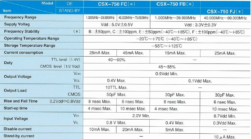 CSX-750F,西鐵城晶振,晶體諧振器