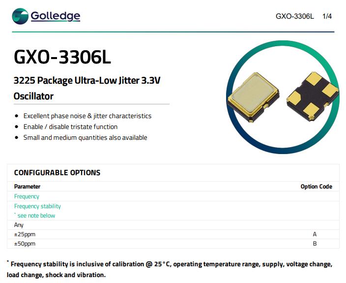 Golledge Electronics提供GXO-3306系列超低抖動振蕩器.這些振蕩器旨在提供卓越的信號完整性,確保在苛刻的環(huán)境中提供準(zhǔn)確可靠的性能.
