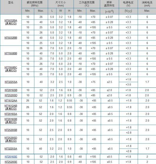 下面是日本電波工業(yè)株式會社(NDK)2017年最新的溫補晶體振蕩器型號及參數(shù)對照表: 因為世界工業(yè)、科技、互聯(lián)網大發(fā)展對于晶振產品的需要加大,不光是供應數(shù)量上的加大,對于晶振技術要求也越來越高,一些普通的石英諧振器和石英振蕩器,已經滿足不了特別高端高要求化的產品。貼片晶振的體積可以說是縮小到不能再縮小的地步,就是掉在地上你也不一定能看見,是容易令人忽略的小小的一顆電子元件,就連溫補晶振最小的尺寸都是2.0*1.6mm的了。不過越有壓力就越有進步的空間,世界的發(fā)展還要靠有源晶振的進步才得能實現(xiàn)。